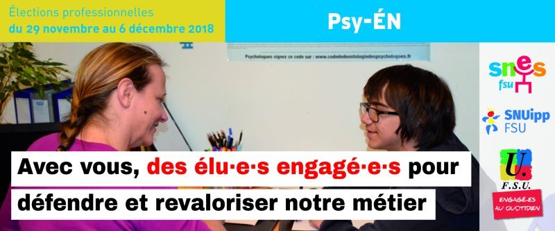 Vous êtes ici : Accueil Actualités Elections professionnelles : les PSYEN en action 5 novembre 2018 Actualités Elections professionnelles : les PSYEN en action Partager l'article sur Facebook Partager l'article sur Twitter Partager l'article via Addthis Imprimer l'article Envoyer l'article par email Quelles ont été les actions des élus SNES-FSU chez les PSYEN durant le mandat précédent, ou pourquoi voter SNES-FSU et FSU ? Texte élection PSYEN